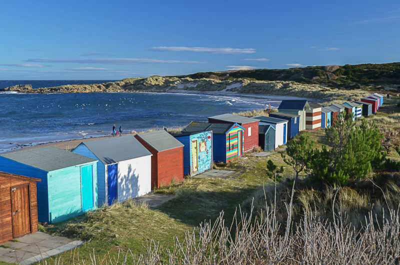 Much lesser known is wee Hopeman beach, one of a string of beaches all linked by the Moray Coast Trail. The row of multi-coloured beach huts here is an irresistable draw for photographers.