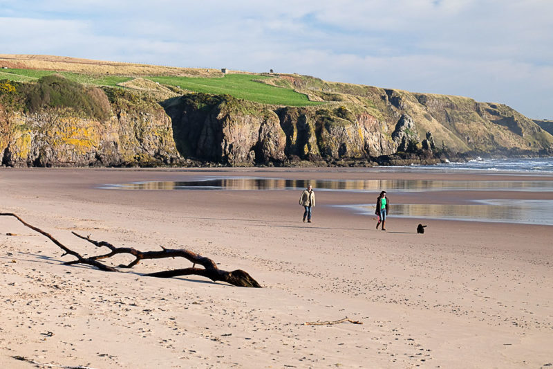 Crossing into Angus, Montrose Beach is certainly well worth a mention – and a visit. Further south Angus has more beaches at Arbroath and Carnousite, but few would deny that Lunan Bay is the finest beach in this area, a magnificent sweep of sand with a cave and arch at its northern end, and even a ruined castle.