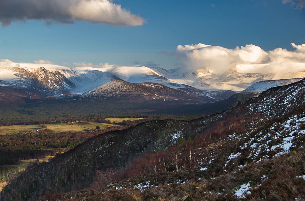The Cairngorms are the snowiest part of Britain and thus make a popular choice for a winter break. Craigellachie is just a short walk from the centre of Aviemore and has stunning birchwoods, lochans, and a fabulous view over the town towards the mountains.