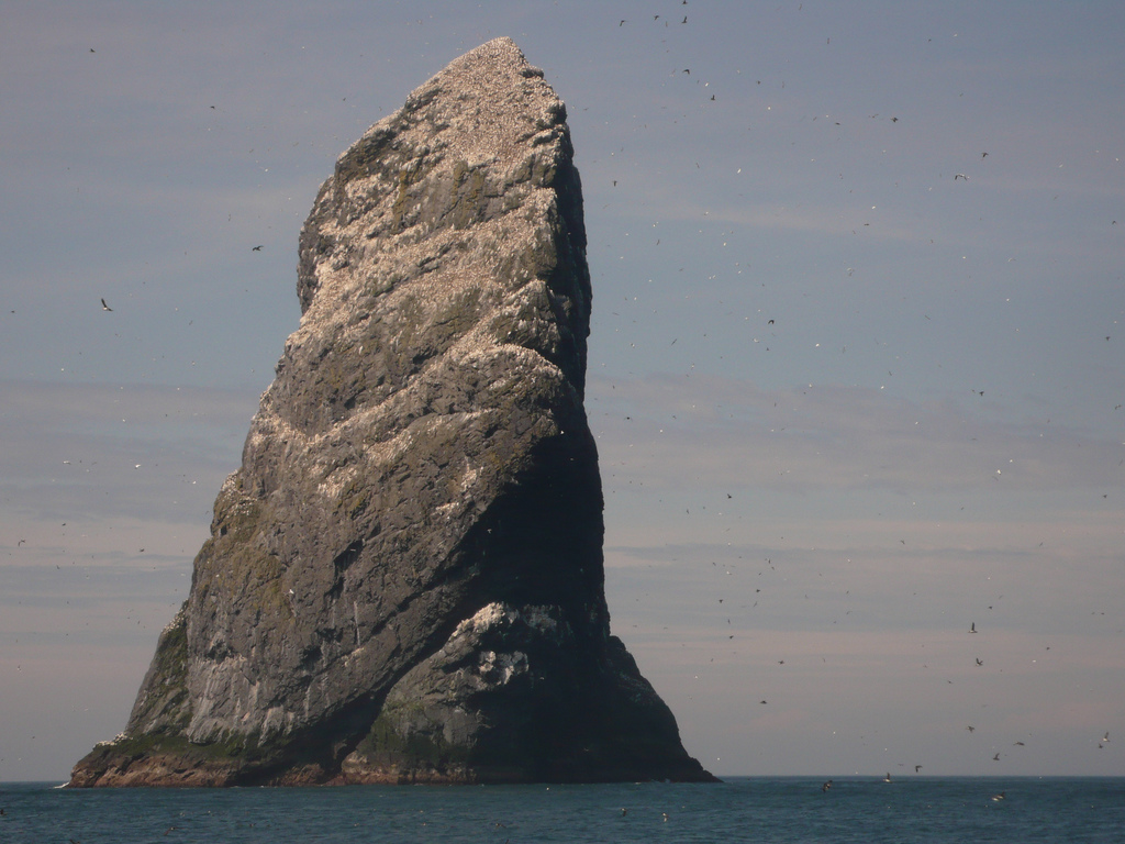 Stac Lee and Stac an Armin are two immense sea-stacks, considerably higher than the famous Old Man of Hoy which is not tall enough to be a Marilyn; videos of an ascent of each are available via the links.